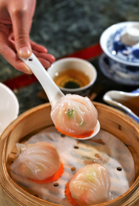 粤点多样,口感风味不尽相同:干蒸烧卖有独特的软糯香甜;叉烧包的肉馅,咬下去香气四溢、肉汁横流;传统的酥皮蛋挞,外酥内嫩,香甜可口,老少皆宜……但若论粤点中最为人熟知的,莫过于“四大天王”之首的“虾饺”。