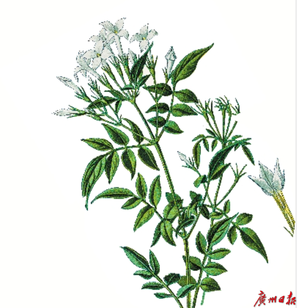 素馨花白如雪,四瓣外开,冬夏均开花,花朵中含有一种挥发得很慢但又浓烈的香气,彼时,花农一早采摘,从花渡头通过水路运输至花地,卖给广州城中的爱花之人。西域之花由此因海上丝绸之路而开遍广州城里城外。