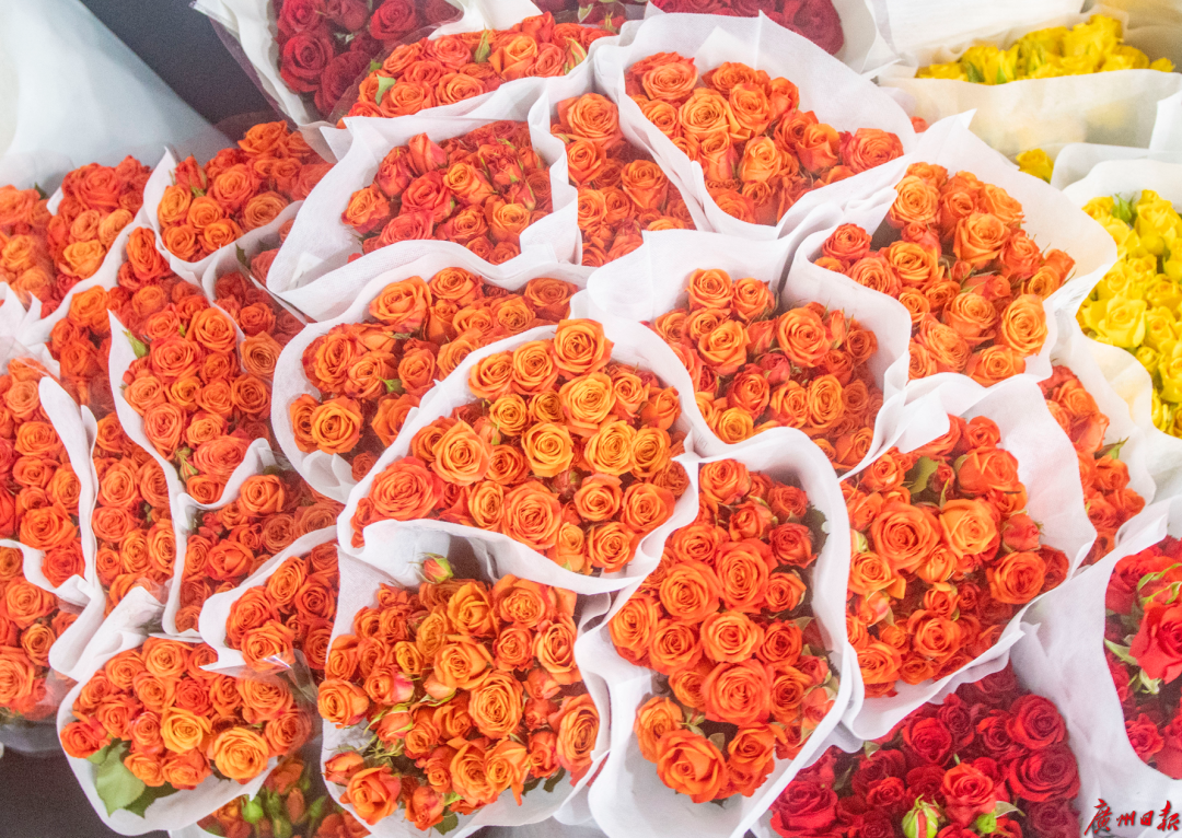 资料图:岭南花卉市场上包扎好的玫瑰花。廖雪明摄