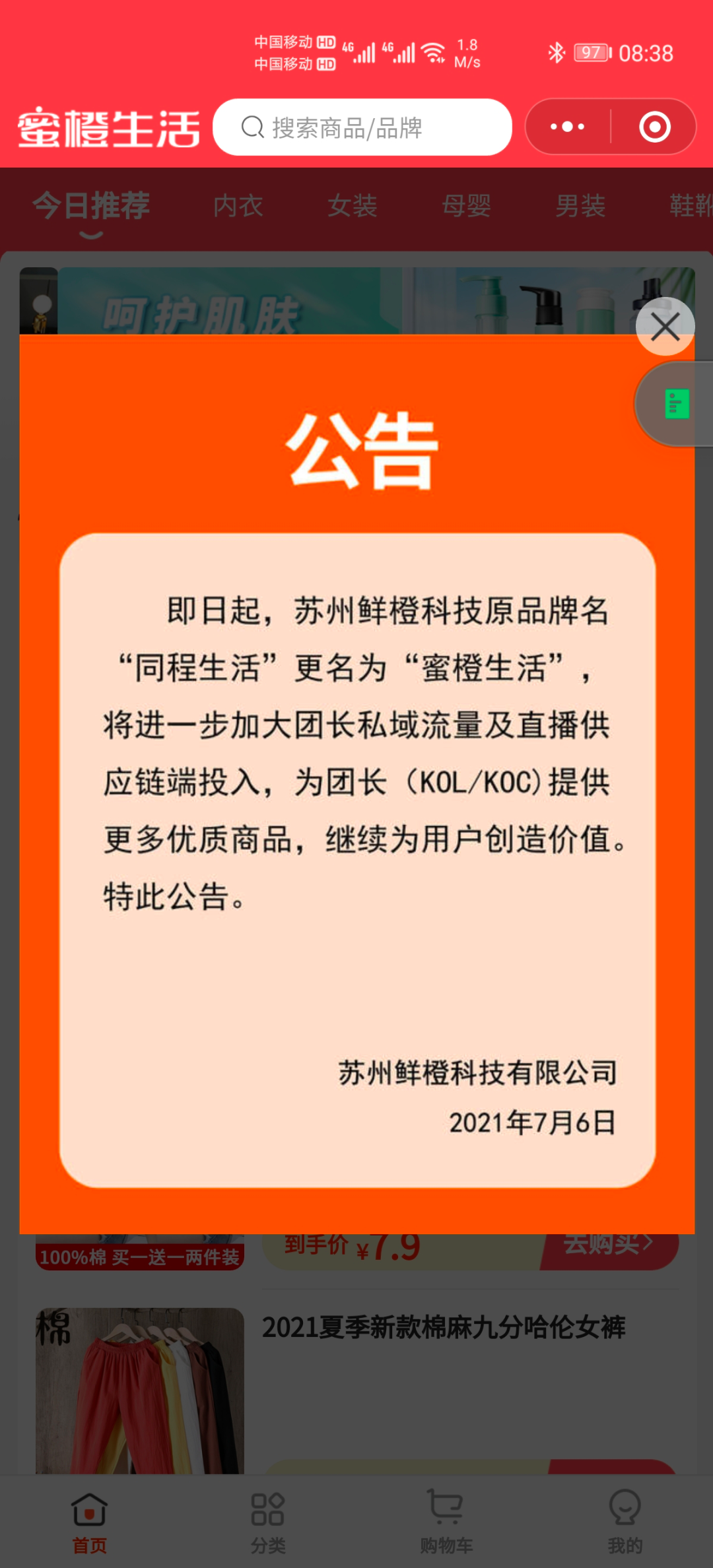 2021年7月6日凌晨,同程生活改名为“蜜橙生活”。改名背后,是拖欠供应商的货款未还。