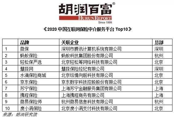 除了内部的问题,水滴的外部压力也在增大。胡润研究院发布的《2020中国互联网保险中介服务平台Top10》显示,腾讯的微保,阿里的蚂蚁保险,排名都在水滴保险之前,水滴之后还有京东、苏宁、携程的保险产品。