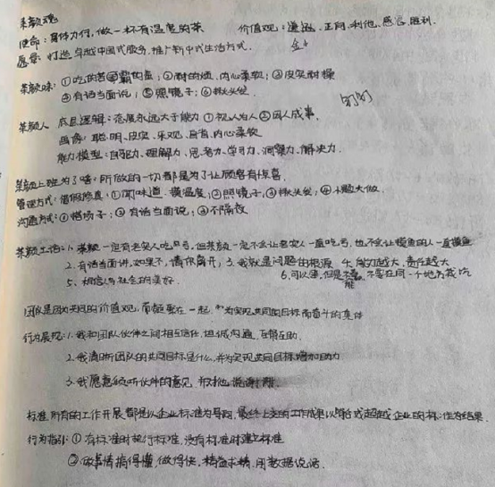 考核标准有三档:A档提成翻倍,B档不加不减,C档提成减半。据悉,对于考核的内容有:顾客进门为什么没有说欢迎光临;点单为什么没有看顾客眼睛;顾客没有会员为什么不让顾客注册;顾客在外面看周边为什么没有人去外面介绍;顾客在外面坐着为什么不问有什么需要;顾客出门为什么没有目光目送;为什么不给试味;伙伴之间说话为什么不友善等。