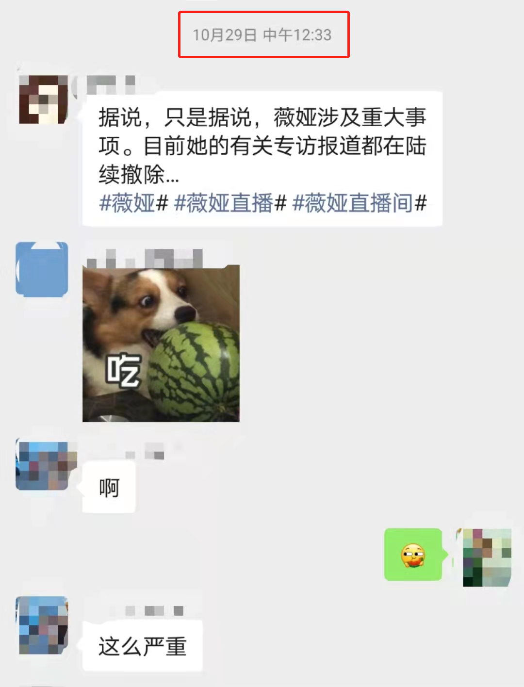 “据说,只是据说,薇娅涉及重大事项。”彼时,该小道消息在微信群聊中四处游走。