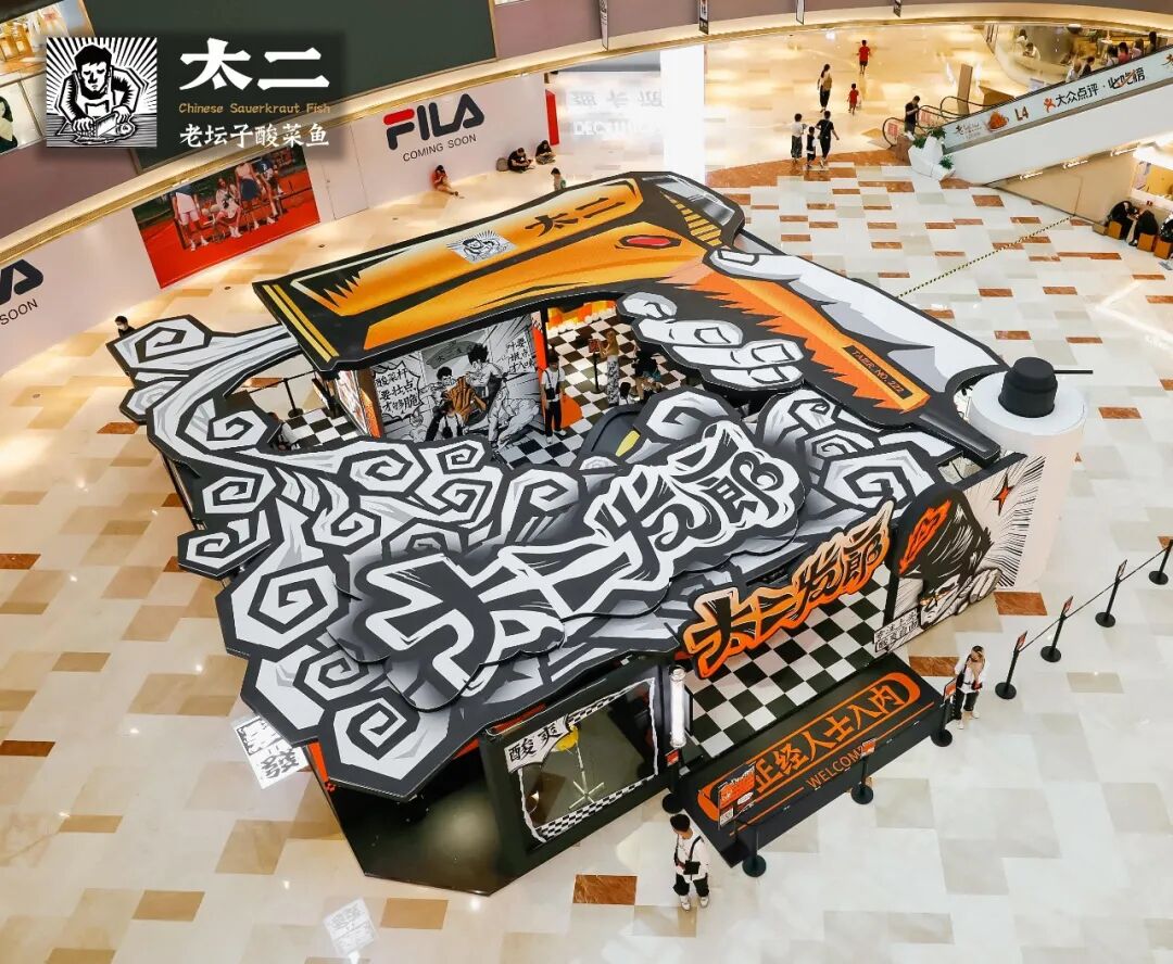 在人多繁华、高档区域、高档mall等地方无一例外的都能找到太二酸菜鱼。