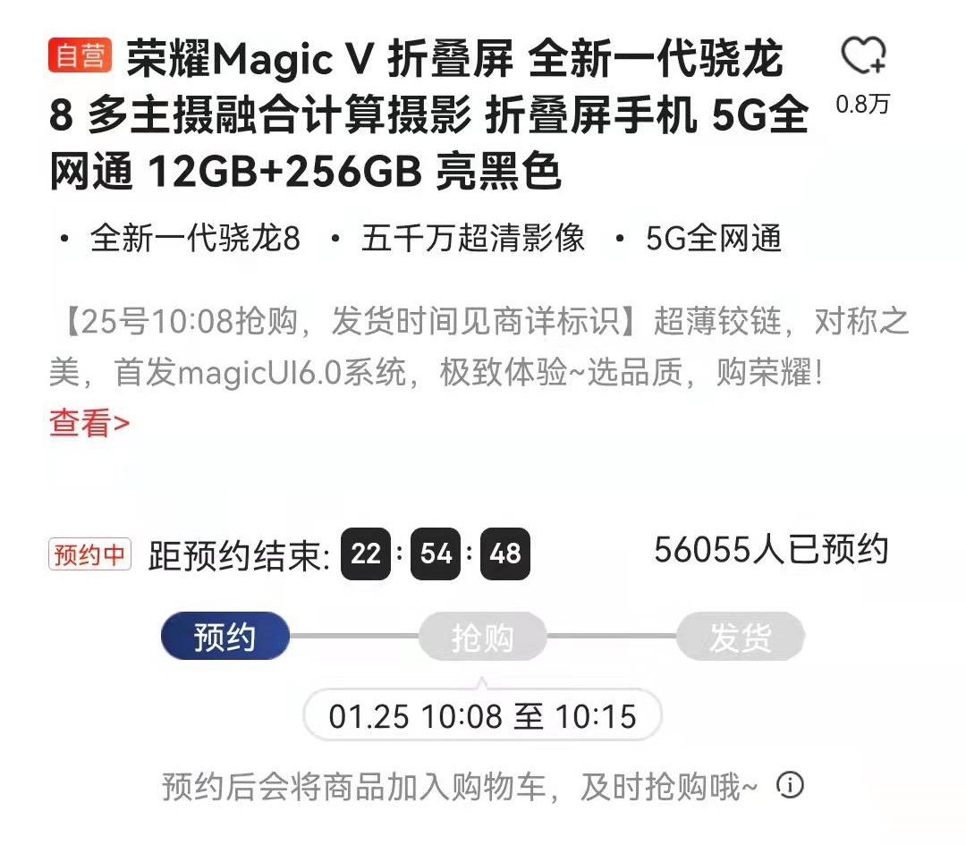 (荣耀Magic V预约量 截至1月24日11时左右)