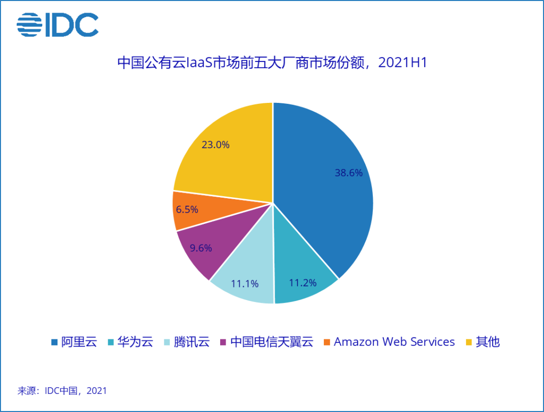 根据IDC发布的2021上半年公有云服务市场报告,阿里占据了近4成的市场份额,长期遥遥领先。2021财年,阿里云的营收达到601亿。
