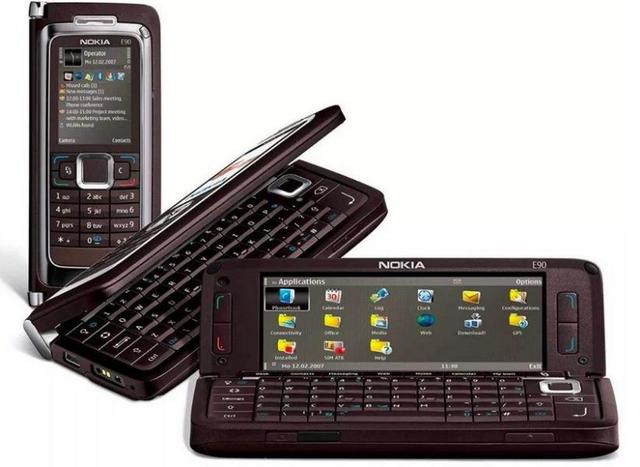 比如2007年的手机机皇诺基亚E90,搭载塞班S60v3系统,采用的侧翻全键盘式设计,相当的厚重。