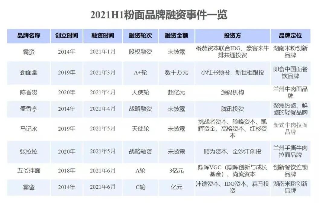 目前,面食赛道融资方兴未艾,前有五爷拌面、霸蛮湖南米粉、和府捞面、遇见小面等都受到资本的追捧,后有陈香贵、马记永、张拉拉等拉面细分品类更是在拿到融资后狂飙突进。