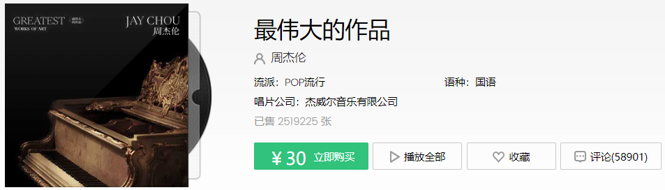 作为周杰伦多年的独家版权方,7月6日这天《最伟大的作品》MV也同步到了QQ音乐上。目前,播放量2713万,评论18万。