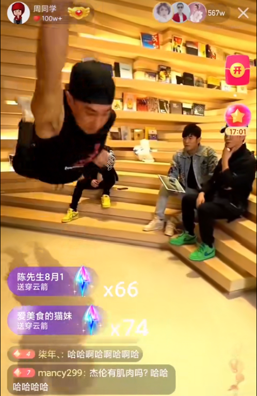 同年7月26日,周杰伦在快手开启首次直播,为了丰富玩法,几个好友也在现场助阵,包括前几个月跳“本草纲目”爆火的刘畊宏,当时在现场也表演了一小段刺激的健身动作。