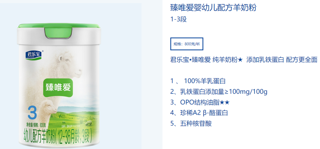 或许是为了改善低价困局,君乐宝开始进军利润较高的羊奶粉赛道,推出了售价高达500元左右(800g)的纯羊奶粉品牌“臻唯爱”。