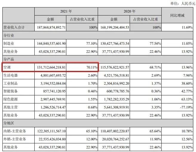 (格力2021年营业收入与构成)