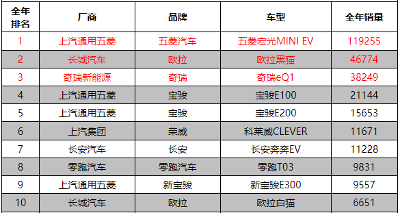(2020年全国轿车A00级车销量排名,