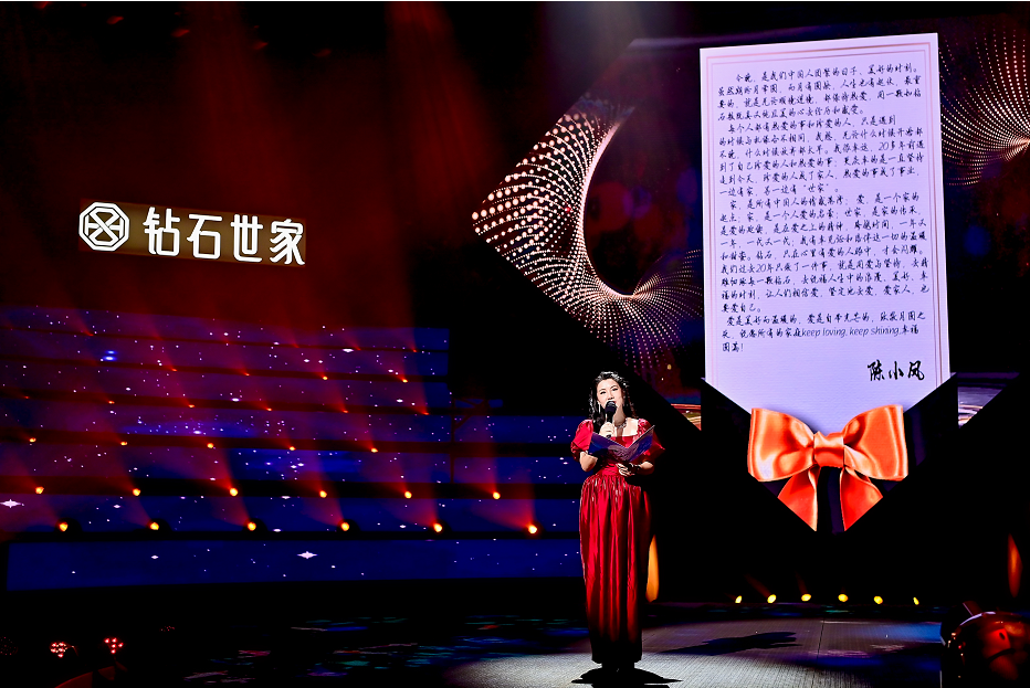 在钻石世家20周年庆典上,钻石世家创始人陈小凤、品牌全新代言人娜扎、极慕之星大使及奥运冠军张常宁三位女性,朗读了三封书信,向外界传递女性力量。