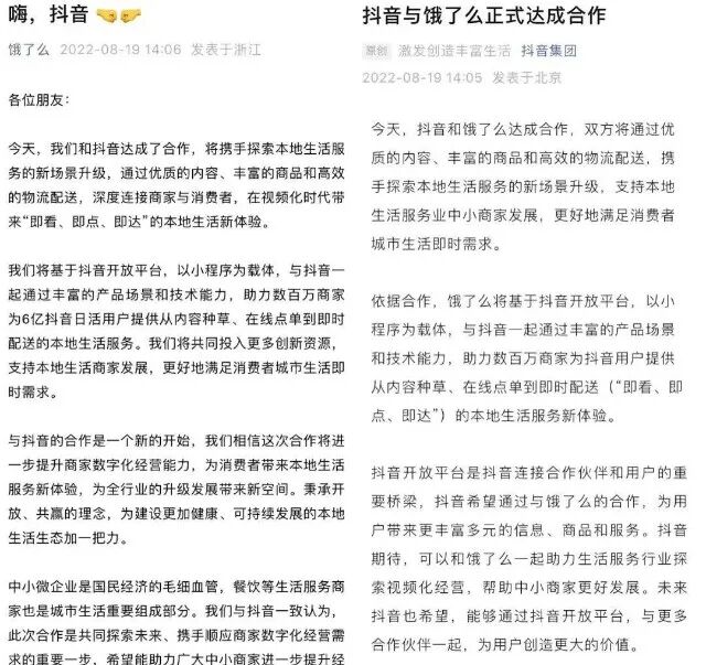 “革新”本地生活体验,抖音、饿了么联手攻入美团“腹地”的野心昭然若揭。