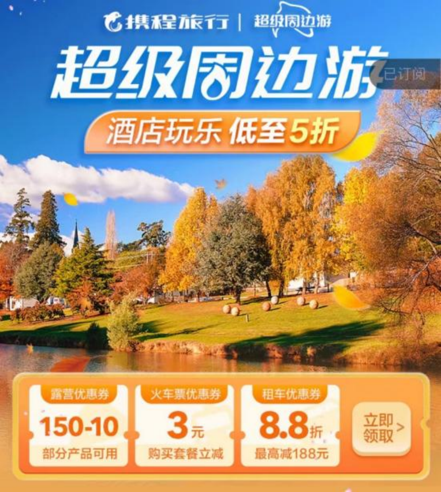今年国庆前后,携程也重点瞄准周边服务,推出“超级周边游”系列活动,涵盖酒店、露营、租车、火车票等服务,直击“本地生活”板块的本地旅游消费,“杀”到了美团的主场。