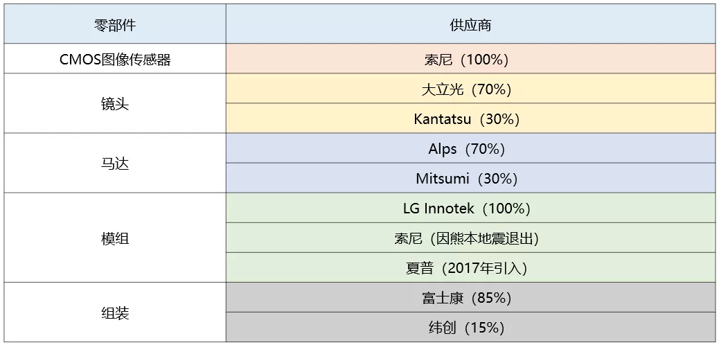 (iPhone 7plus摄像头供应商 图源:远川研究院)