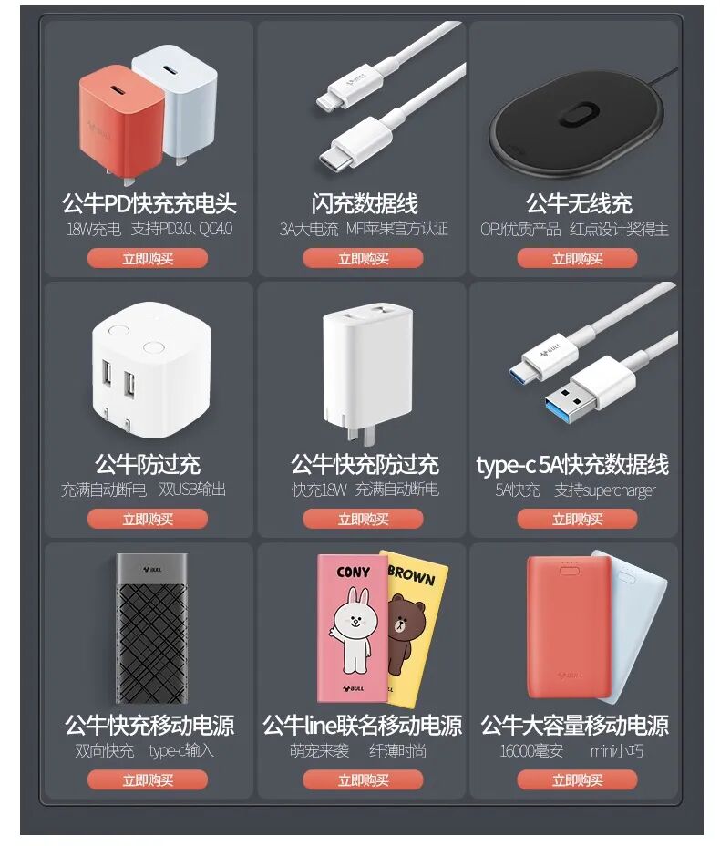 这些年,除了插排,公牛也在进行多元化,推出如充电枪、家居配件、充电宝等产品。