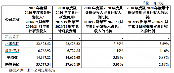 与科创板要求的研发费用率5%相比,联想近三年的综合研发费用率约为2.5%,也就是说联想根本没有资格上科创板。