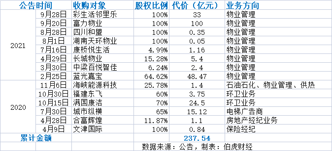 据伯虎财经不完全统计,2020年至今,碧桂园物业已斥230多亿,用于并购。