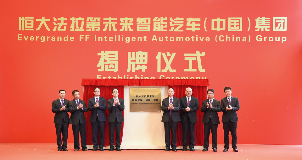 (恒大法拉第未来智能汽车(中国)集团在广州恒大中心正式揭牌 图源:网络)