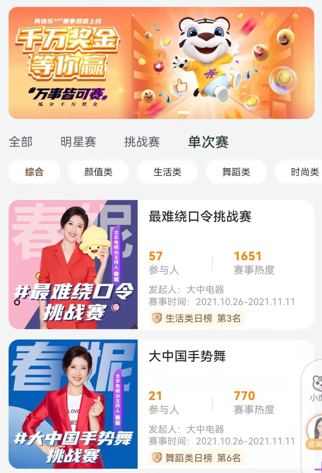 围绕“乐”,“真快乐”重点打造以赛事、榜单为重点的特色板块,推出“赛事”平台及“榜单”功能。