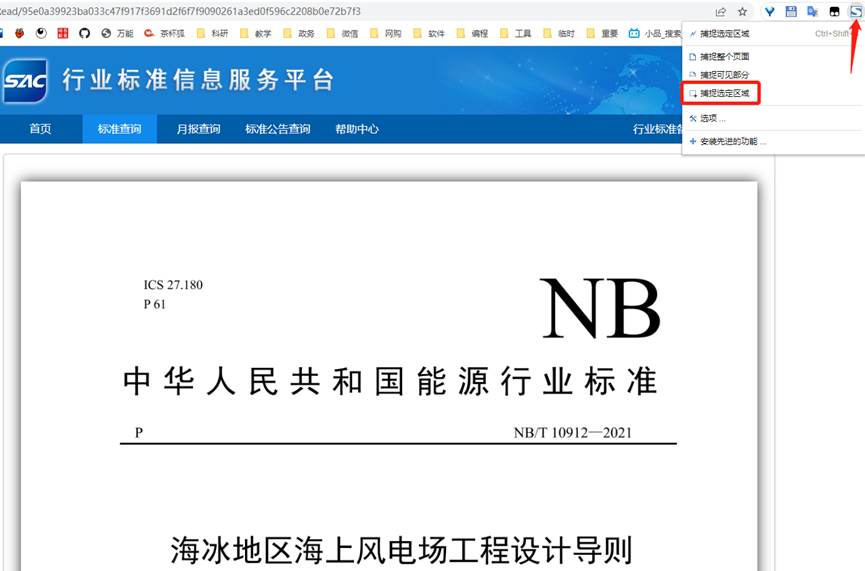 该网站可以阅读标准的完整内容,但未提供下载和打印功能,因此,只能通过滚动截屏的方式下载保存该标准。浏览器只需要安装FireShot插件,就能对浏览器里的内容进行滚动截屏了。