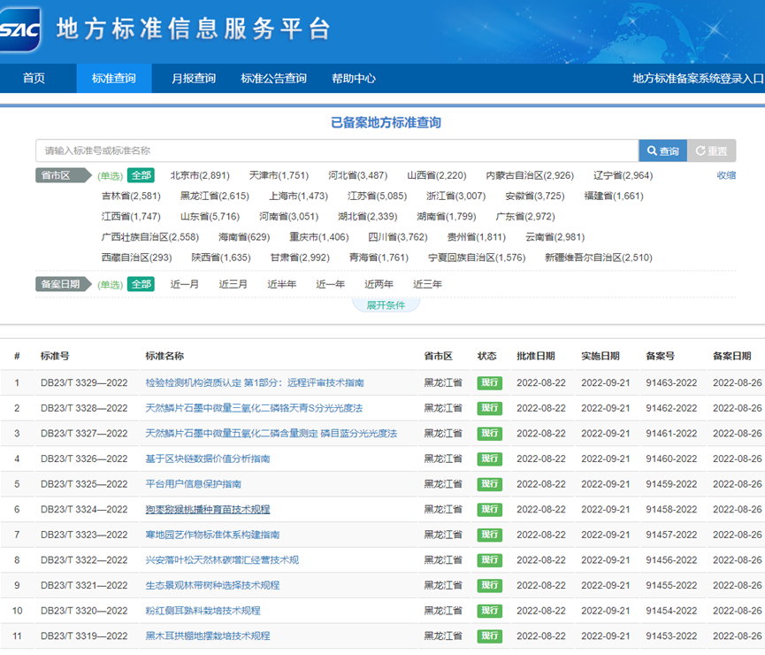 该网站创建于2012年5月8日,各省和直辖市都有当地的质量和标准化研究院,负责发布地方标准。百度搜索“江西省质量和标准化研究院”就能搜出江西的,同理搜索其他各地的。