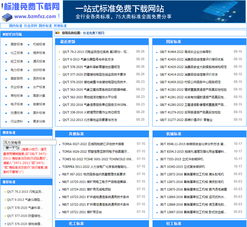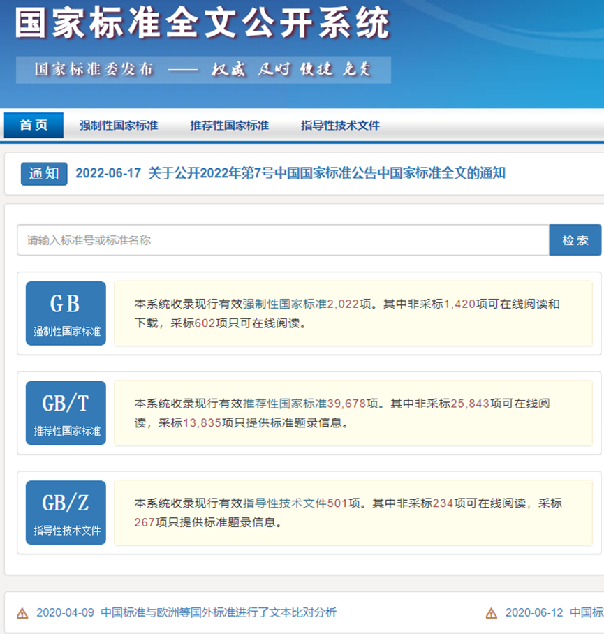 知网是中文学术资源最全的网站,除了期刊、会议、报纸,也支持下载各种标准。优点是大而全,缺点是标准的下载是收费且加密的。也就是说收费下载的标准,只能用知网的软件(CajViewer)打开。