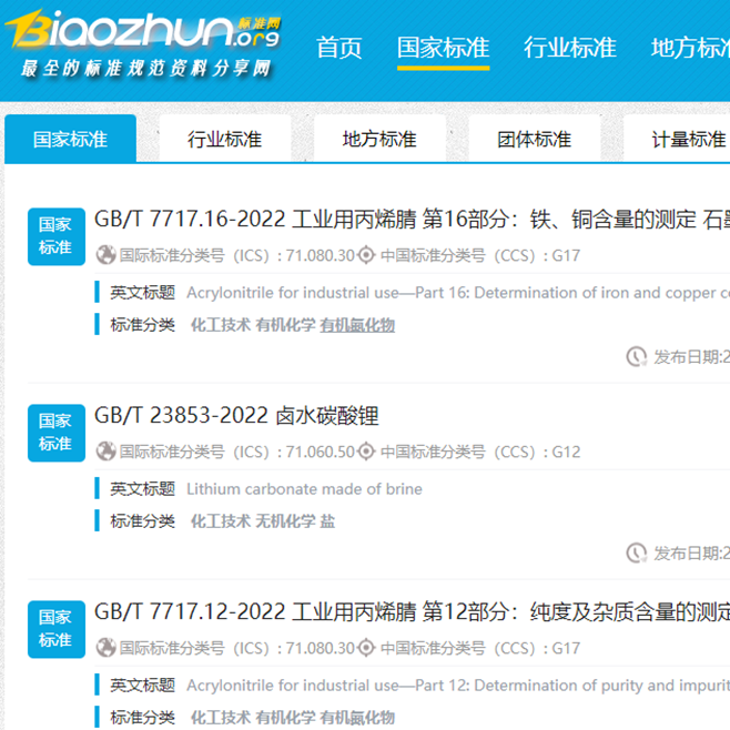 http://www.ncosm.org.cn/ncosm/portal/standardInfoList