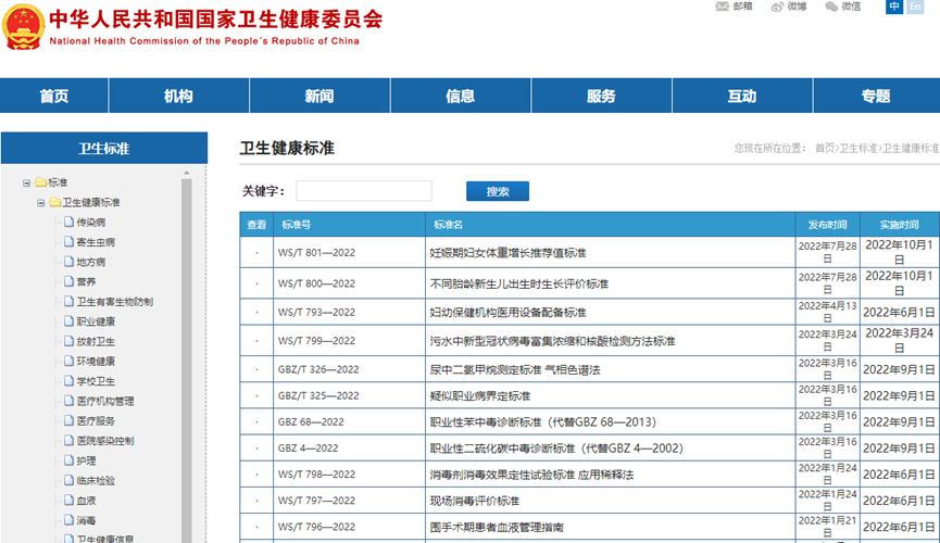 以下以卫生健康委员会标准为例,演示这些政府网站标准的下载方法,其它部门网站与之类似。