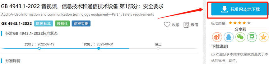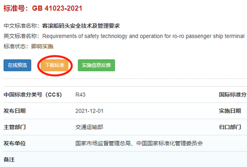 2)搜索出来后点击“查看详情”,就会有“在线预览”、“下载标准”、“实施信息反馈”3个按钮,如下图所示。