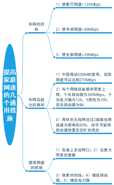 本文采取"实例+总结"的结构,用事实说话,先展示我家的网络布局结果,再由此总结出提高家庭网速的几条通用措施。