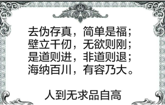 “海纳百川,有容乃大;壁立千仞,无欲则刚。”林则徐这后半联尤其适用于提醒当今社会超前消费的大量小年轻们——要想无忧无虑、自由自在,最关键的是减少自己的欲望。