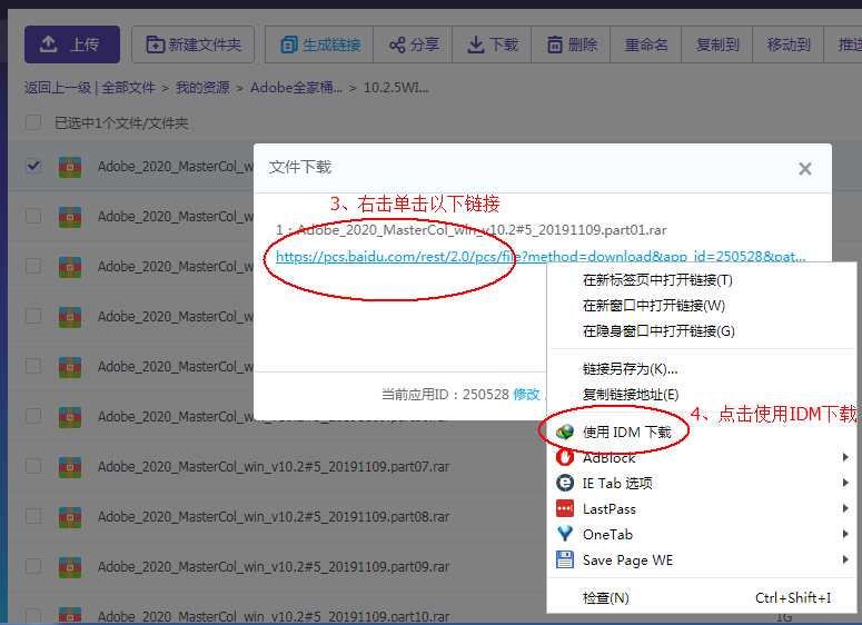 8)再右键单击生成的链接,选择菜单里的“使用IDM下载”。