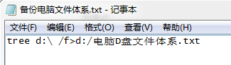 再比如下面这个脚本程序,虽然只有一句代码,但它却可以将你电脑整个D盘的文件体系,保存为一个名叫“电脑D盘文件体系”的txt文件,可以迅速将整个D盘的文件的文件名与文件树状图保存下来。