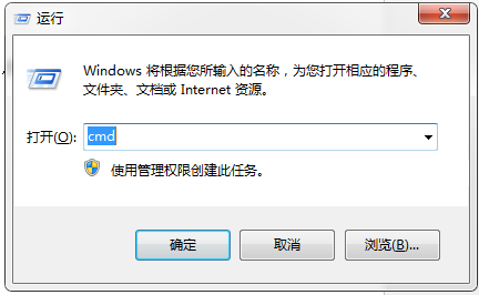 windows系统启动之后,按快捷键Windows键+R键,启动“运行”程序,输入cmd三个字母,然后点击“确定”或按回车键,打开“cmd.exe”程序,如下图所示。