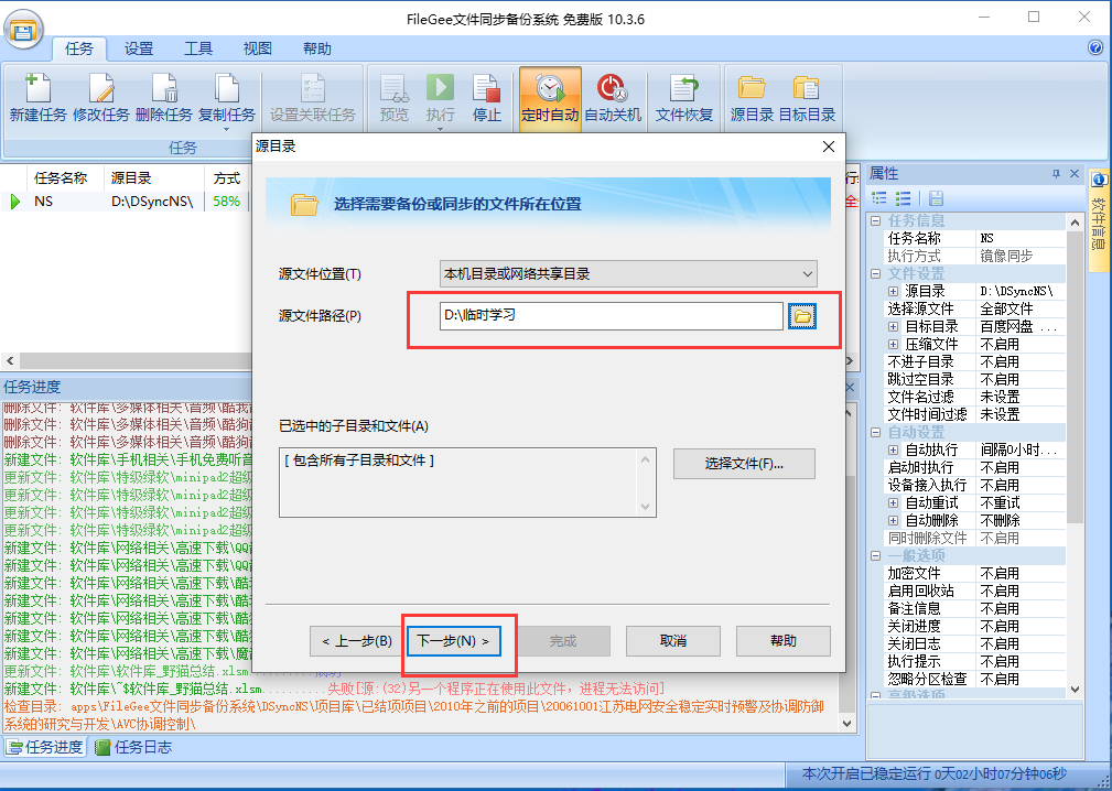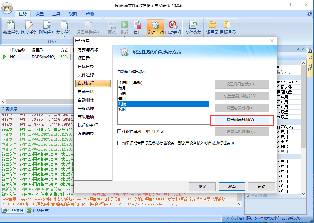 6)点击下一步,设置好同步的间隔时间、是否过滤某些文件、是否自动重试……看不懂如何设置,随时可以点击帮助,很容易就看明白了。