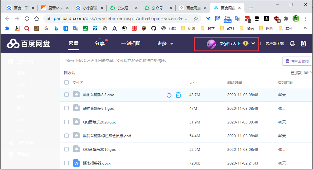 没有百度账号的可以用手机号免费注册一个,电脑上安装了百度网盘的,也可以直接点击百度网盘的回收站,浏览器将自动登陆你的百度网盘账号。