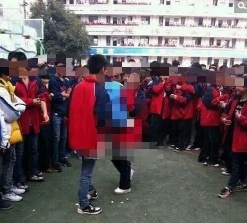 还有一则发生在校园中,一名中学男生在校园里表白,做出不雅行为,引学校上千人围观。