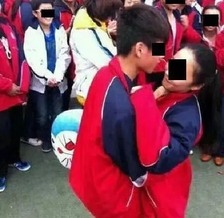 这一举动引起围观学生的开怀大笑,但两个孩子不仅没有感到羞耻,反而更进一步,真真是无知者无畏啊!!!