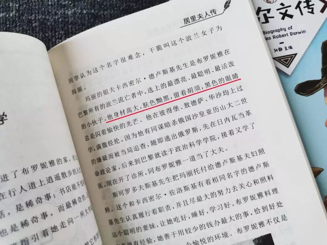 例如,在《居里夫人传》中,对于人物的外表,书中是这样描述的: