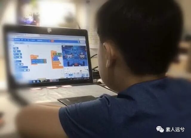 我们就报了最低级别的一段线上编程课。怕儿子学不会,上课时我也跟着一起学。