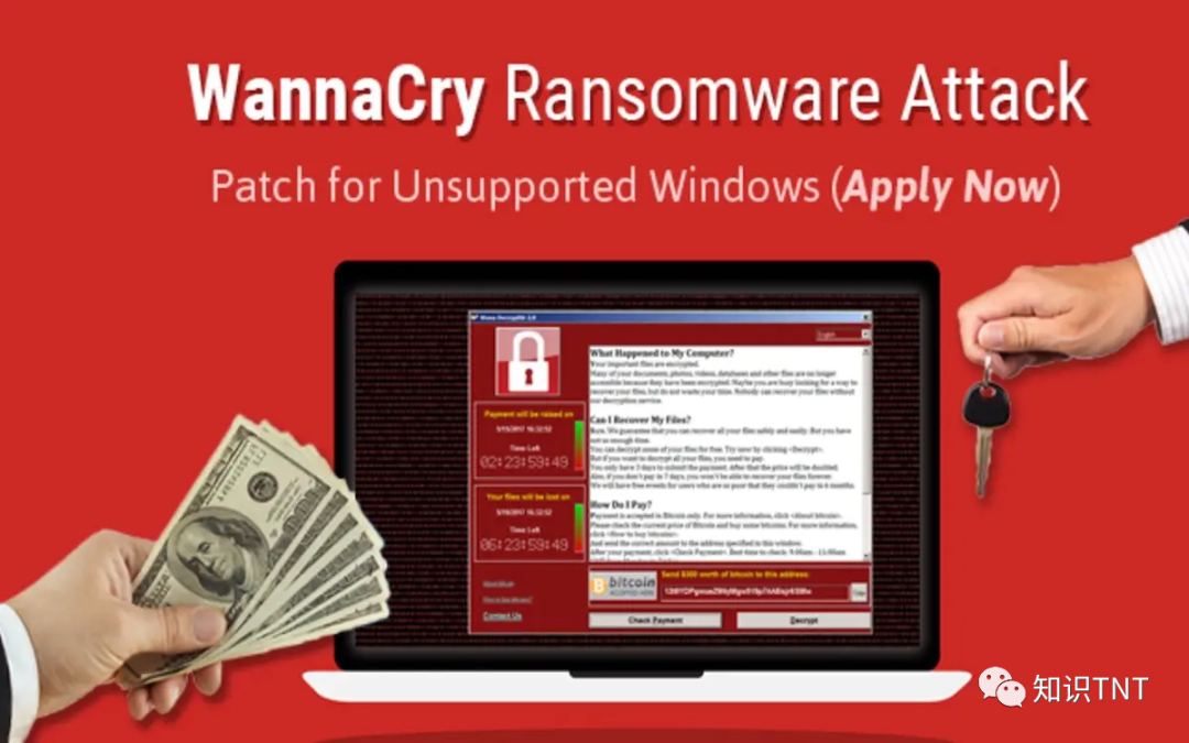 2017年在全球大爆发的WannaCry勒索病毒。这种电脑病毒通过网络途径就侵入电脑,然后会对电脑上的一些重要文件进行加密,并且要求受害者支付一定的虚拟货币,一旦超过预定的时间没有支付,那么病毒就会将这些重要文件删除。并且永远无法恢复。但是主要发生在国外,国内比较少见。