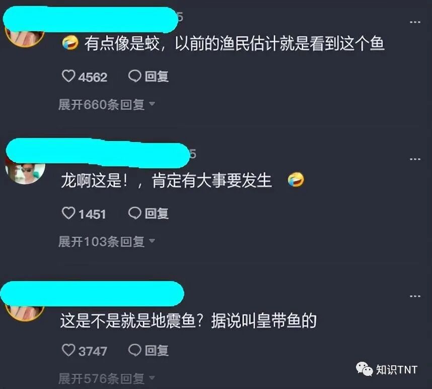 根据媒体提供的资料显示,这条地震鱼的长度达到了6米,而测量后的重量为260斤,专家很快就确定了这是一条皇带鱼,也就是民间相传的地震鱼。消息一出就引发了大量的讨论,皇带鱼是深海鱼,怎么会出现在近海?这次发现地震鱼是否代表着是最近会有地震发生?