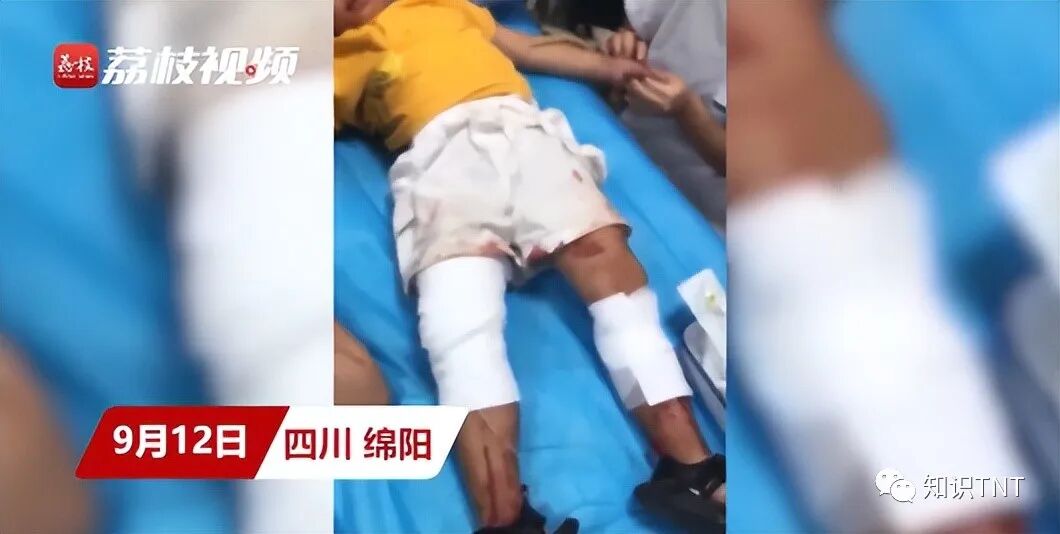 2022年9月12日,四川省绵阳市园艺山人工湖一3岁男童被大型犬追咬,尽管涉事犬有牵引绳控制,奈何大型犬力量过大,主人试图控制但未起效,造成幼童额头、大腿、小腿等多处受伤。
