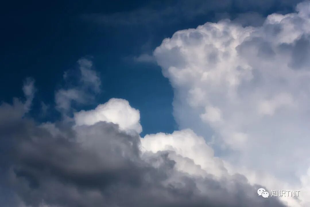 当云团中的云滴数量升高,云滴就会相互碰撞结合成体型庞大的雨滴从空中坠落。大多数情况我们看到的白云就是云滴少的,乌云就是云滴多的。造成这云团颜色差异的是云中的雨滴数量,云滴天然可以反射和折射太阳光,所以正常情况呈现的颜色是白色,但当云团中云滴数量增多无法透光的时候,云在我们看来就变成黑色。