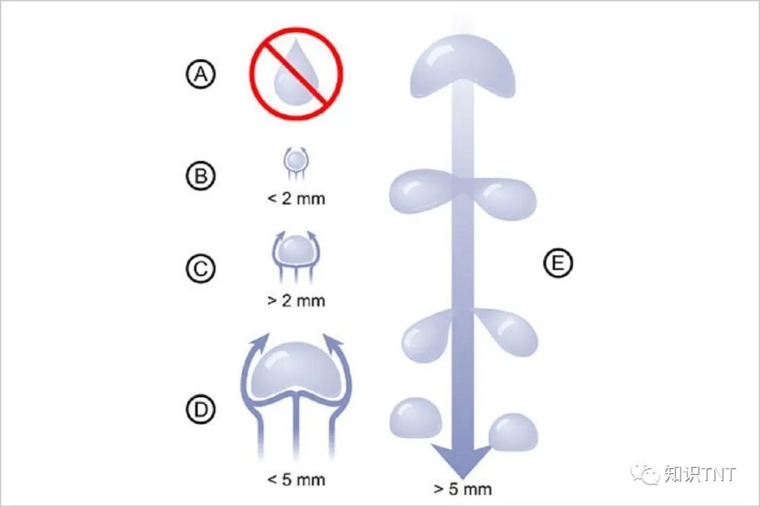 我们把直径超过5.5毫米的雨滴定义为大雨滴,它们下落时的体态和小雨滴不同,小雨滴是圆的,大雨滴是纺锤形的。在下落过程中大雨滴的形态受空气阻力作用,中间向内塌陷,两边向外张开,被迫分裂成两颗正常的雨滴。