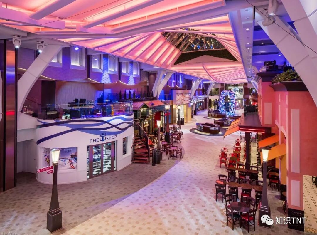 除了庞大的身形,绿洲系列三艘游轮的内部设计更为耐人寻味。它们以商业街的形式区分船上的不同空间,乘坐别的豪华船舶都是来度假休闲,选择它们却更像是来逛街购物。