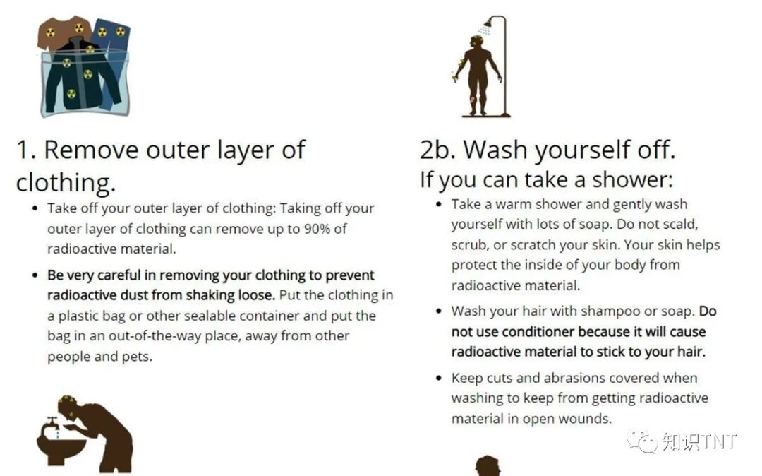 和这个原理类似的减轻辐射的方法还有洗头和洗澡。当我们遭遇核辐射时,可以使用洗发水和沐浴露,洗掉头发和身上的油脂与污垢,从而避免辐射尘吸附在身体上。最近,美国一直在宣扬俄罗斯可能使用核武器,这让本就处在紧张局势下的平民更加担忧。如果核战争爆发,我们还能做什么来避免核辐射呢?实际上,对于普通人来说,躲避核辐射最简单的办法就是躲在砖砌或着混凝土建筑内寻求庇护,同时应该避免用手触摸自己的眼睛、嘴巴和鼻子。